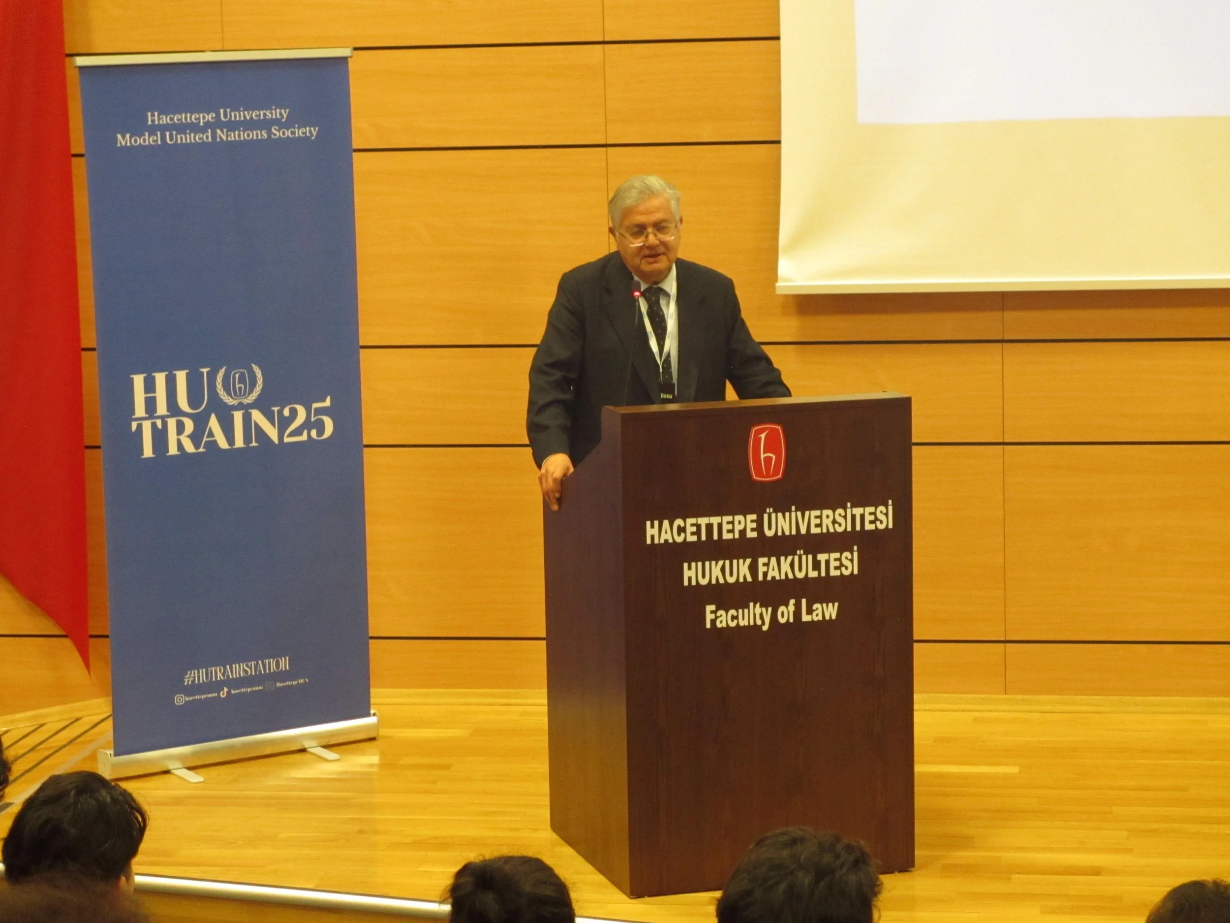 Vice Rector of Hacettepe University, Prof. Dr. Şahap Armağan Tarım, delivering his speech in the opening ceremony of HUMUN’25